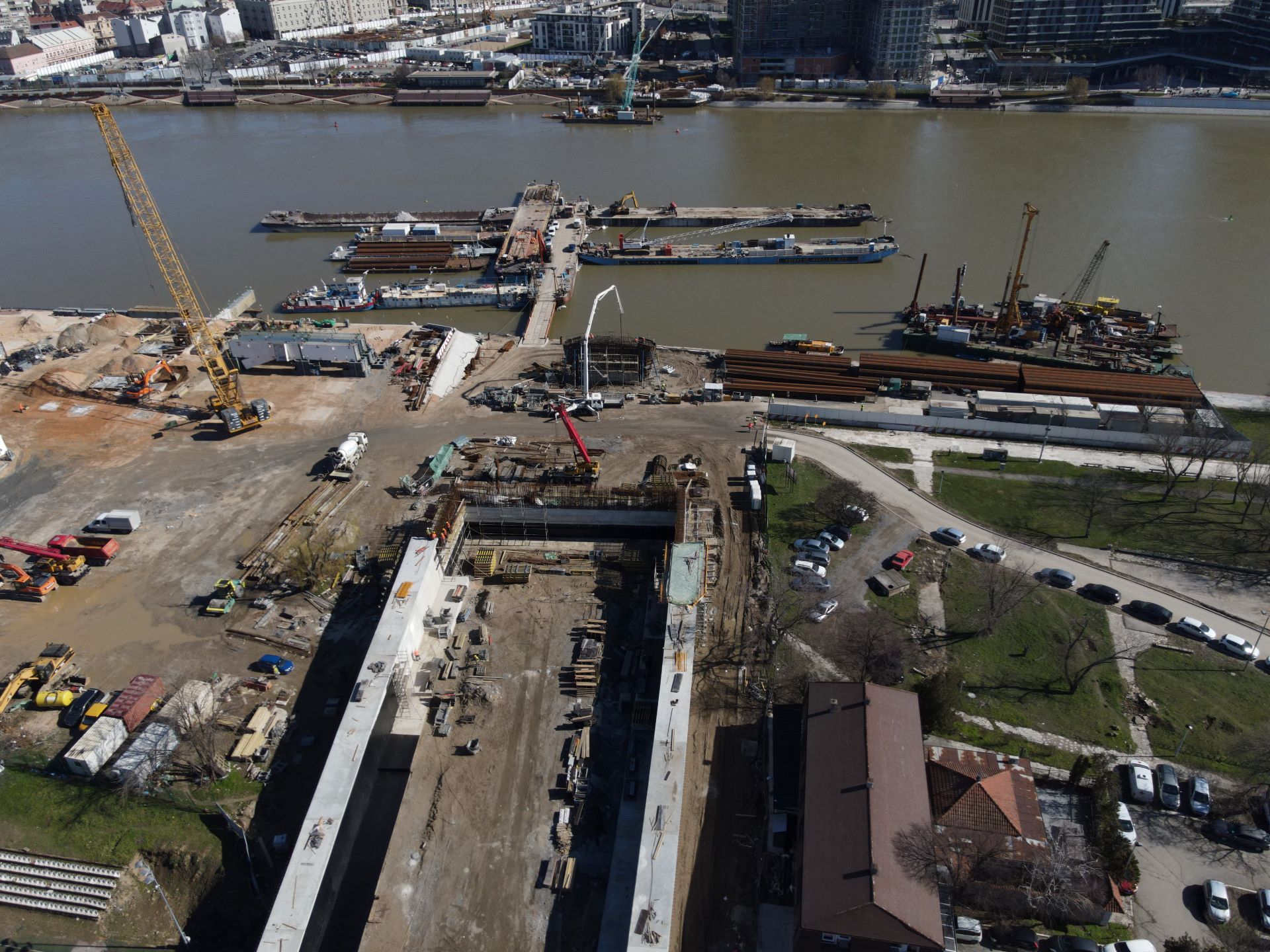 Izgradnja Novog savskog mosta napreduje, a započeta je najkompleksnija faza – radovi na dva rečna stuba koji se nalaze u vodi. Za razliku od konstrukcije Starog savskog mosta, koja je imala tri stuba u vodi, nova će imati samo dva, a preostala četiri biće na kopnu, čime će se značajno proširiti plovni put i omogućiti prolazak većih brodova Savom, kroz Beograd.