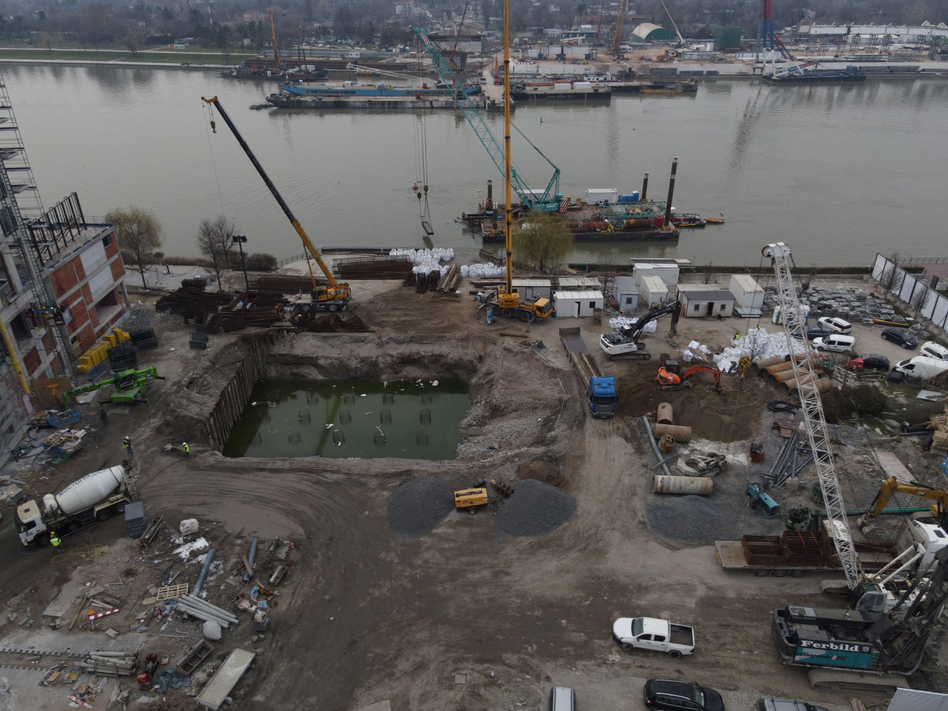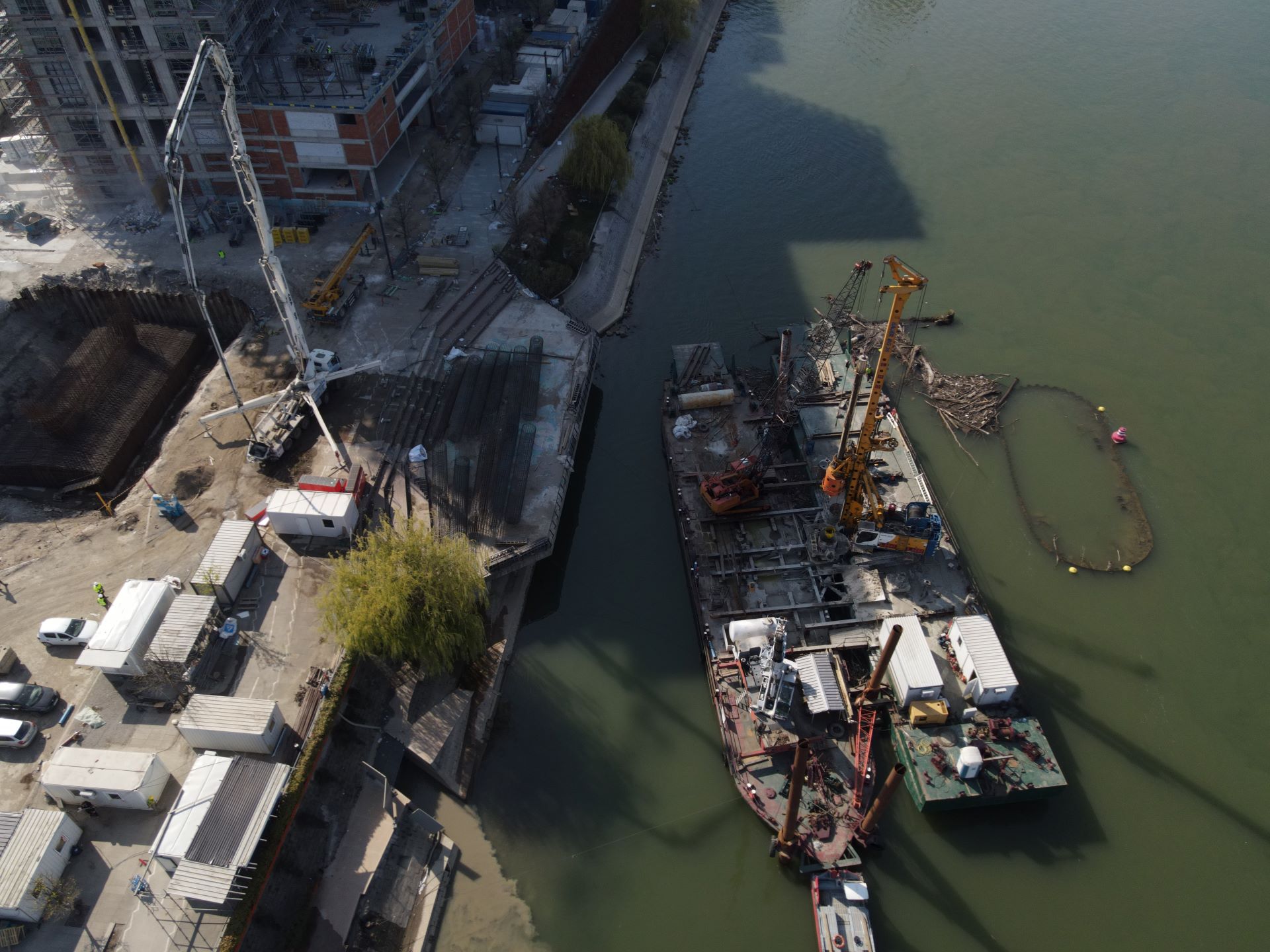 Najveći izazov za ljude na gradilištu predstavljaju aktivnosti u reci. Na stubu S3, gde je predviđena izrada ukupno 21 šipa dužine 20 metara, radovi su u punom jeku. Do sada je uspešno izvedeno 12 šipova. Stub S4 zahteva još dublje fundiranje, gde će se u dno reke pobijati 21 šip dužine čak 30 metara. Paralelno se završava i rušenje postojećih stubova u vodi, od stare konstrukcije.