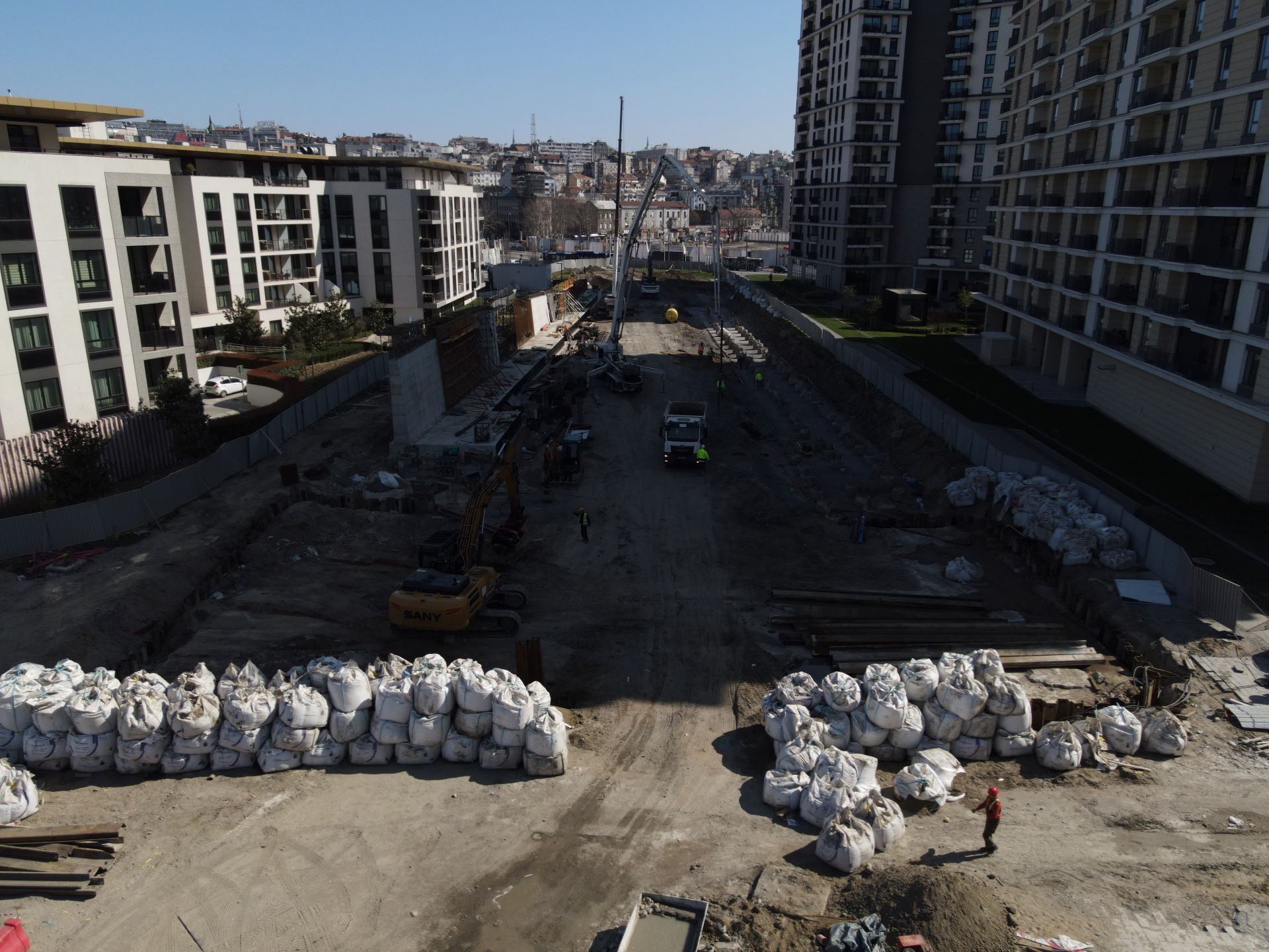 Radovi na stubovima na kopnu se privode kraju. Na novobeogradskoj strani su svi potporni zidovi završeni, a na stubovima S5 i S6 gotovo je oko 95 posto posla. Sada sledi finalna faza koja se odnosi na montažu oslonaca za buduću čeličnu konstrukciju mosta. Napreduju radovi i na strani Savskog venca gde je temelj stuba S2 završen. Za stub S1 urađen je iskop temeljne jame i započeti su armirački radovi. Na ovoj obali završeni su svi šipovi za potporne zidove. U toku je izvođenje potpornih zidova sa leve strane i temelja potpornih zidova sa desne strane mosta.
